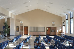 After breaking ground in March 2012, work progressed ahead of schedule. The education wing portion of the addition consists of metal stud, joist and deck and membrane roofing, while the new sanctuary has a structural steel skeleton, metal stud walls and exposed glu-lam beams on the ceiling. The addition’s roof is wood truss with shingles, and its exterior includes brick, vinyl siding and aluminum windows and doors. Inside, the remodeled areas and the addition have standard finishes with some wood and stone trim in the sanctuary.
