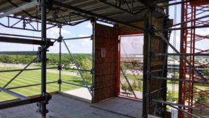 Iowa State University’s Willow Hall underwent renovation of its 272 dorm rooms and 15 storage rooms this summer. While students were away on break, Story went to work to complete this eight-floor project in just 57 days. The project included demolition of existing case work in each dorm room; furring out the exterior wall and interior walls; applying spray foam at the exterior wall; painting each room and laying down flooring throughout the space. In addition, the crews revised the building’s electrical systems to accommodate new fixtures and other devices. Because the elevator was being worked on by another contractor at the same time, Story provided access to each floor via scaffolding erected on the east side of Willow and interior platforms on each floor. Demolition started on May 13 and by mid-August Willow Hall was ready for the students to move into their newly refurbished surroundings.