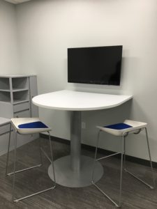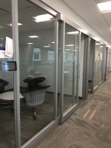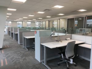- New office area with open concept work stations, showroom, employee kitchenette, and meeting/community space