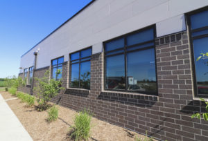 The design of the facility features masonry, metal planel and copper accent exterior at the entryway to the building. Glulam (glued laminated timber) is also featured at the main entrance and is reminiscent of powerline poles. The layout of the building reflects Midland Power’s need for a mix of semi-private office space, collaborative areas and larger meeting space.The building also features energy efficient geothermal heating and cooling with radiant heated flooring.