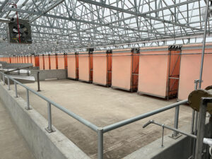 To construct the facility, Story crews prepared the site by draining and desludging the primary lagoon to accommodate the new greenhouse and associated settling basin. Structural fill material was placed, and Story personnel performed concrete foundations, basin construction, and installation of piping and utilities tied to the new process.